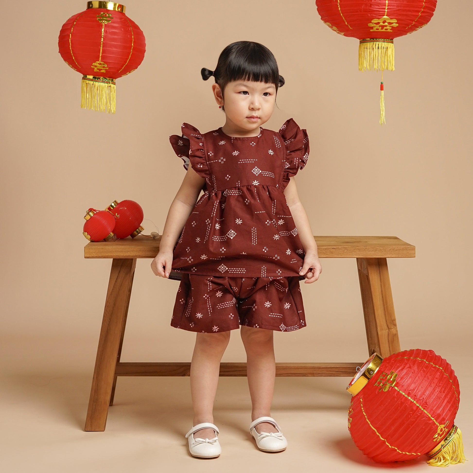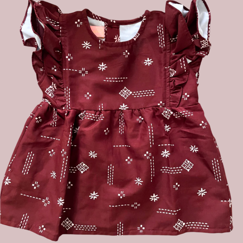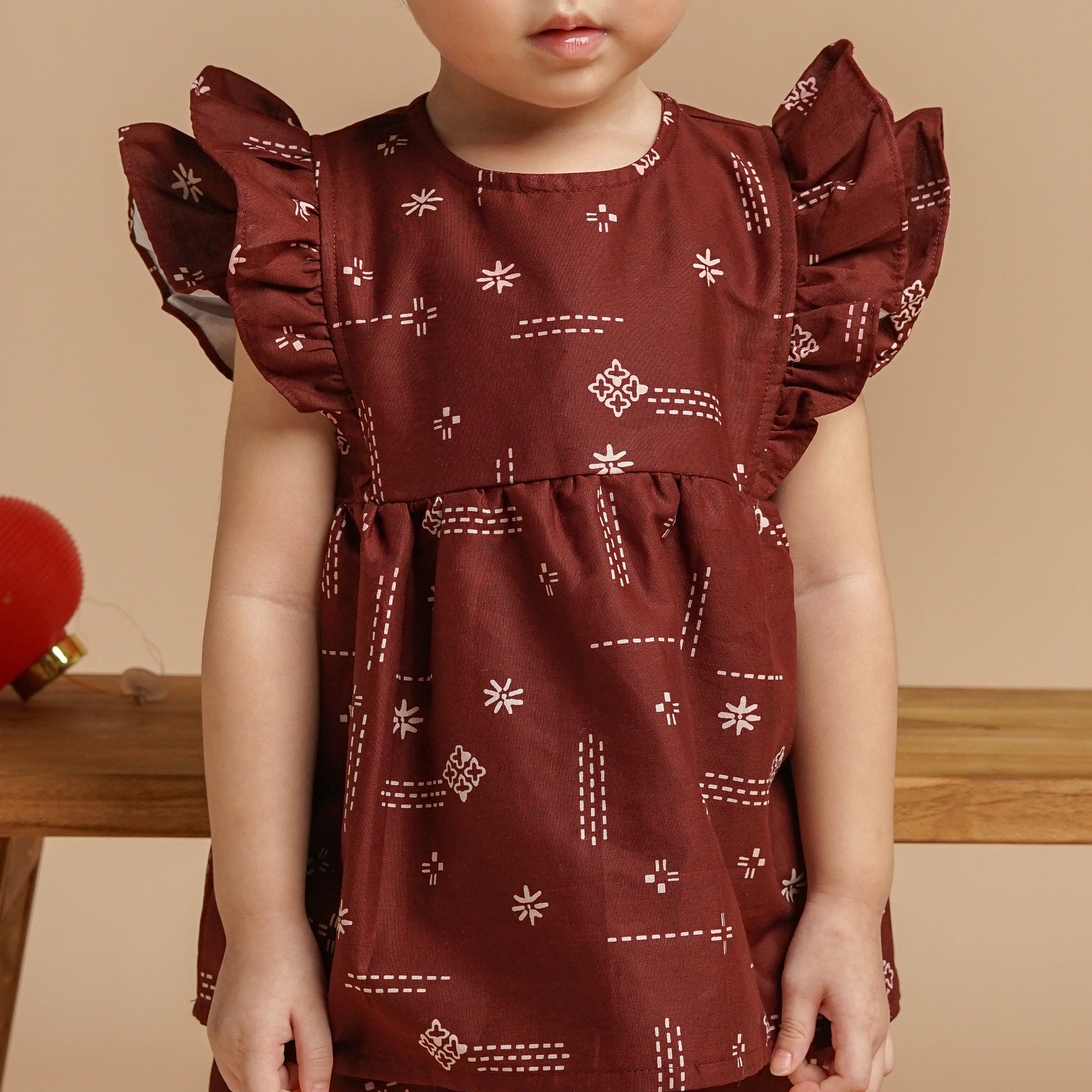 This batik top features double ruffles on the sleeves and a A line body.